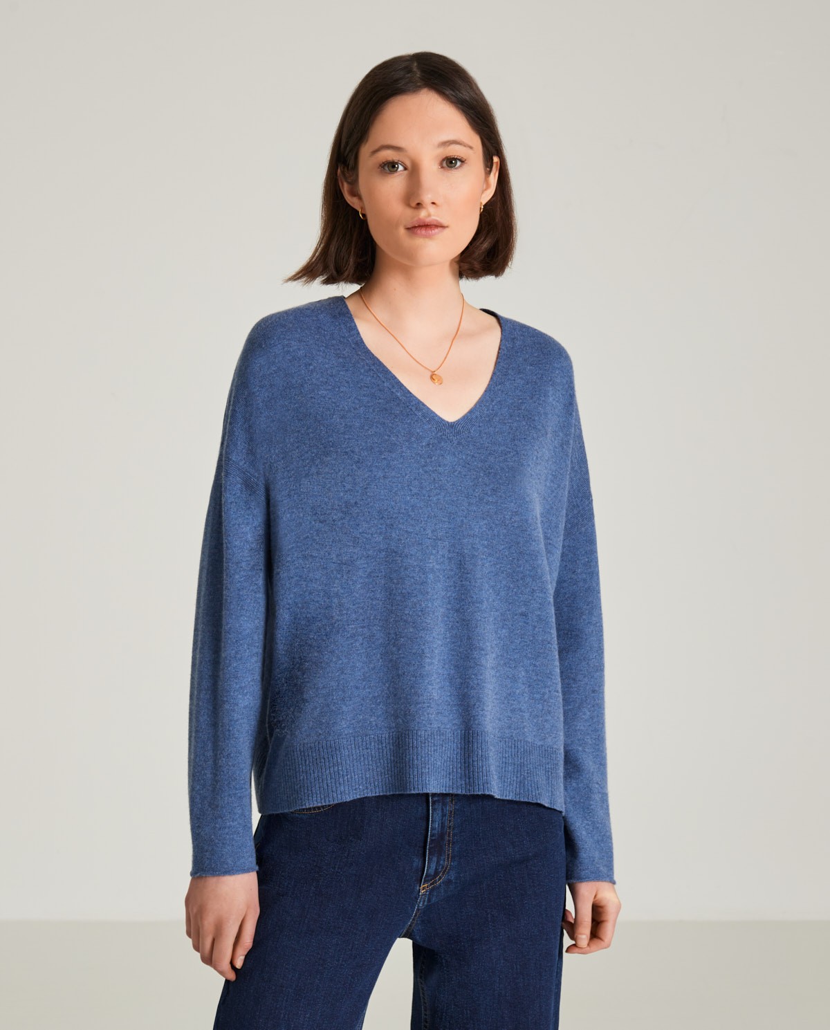 Recycled Cashmere Deep V Neck Sweater Cuyana