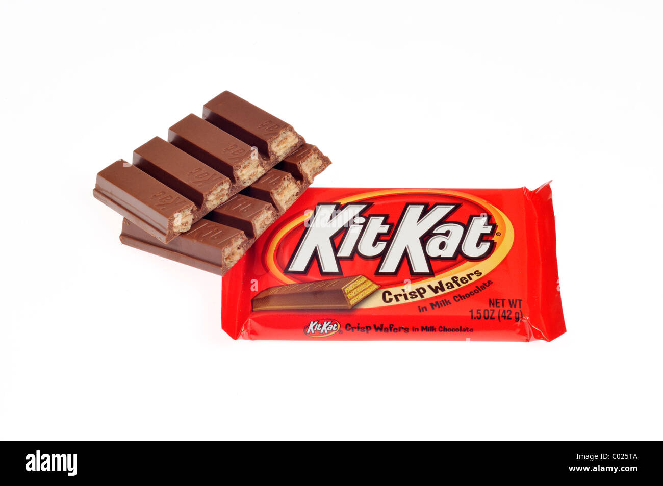 2 Kit Kat Schokoriegel Man Ausgepackt Und Gebrochen In Der Halfte Auf Weissem Hintergrund Gewickelt Ausschnitt Stockfotografie Alamy